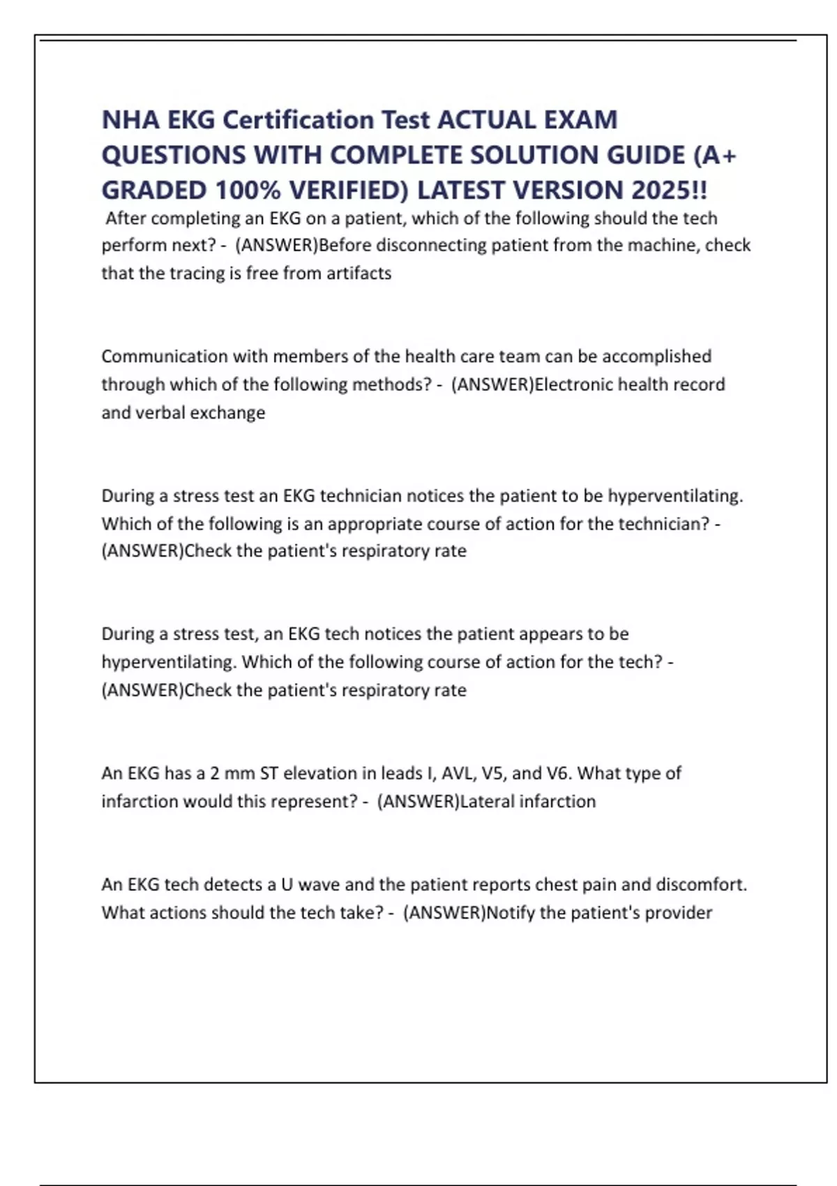 NHA EKG Certification Test ACTUAL EXAM