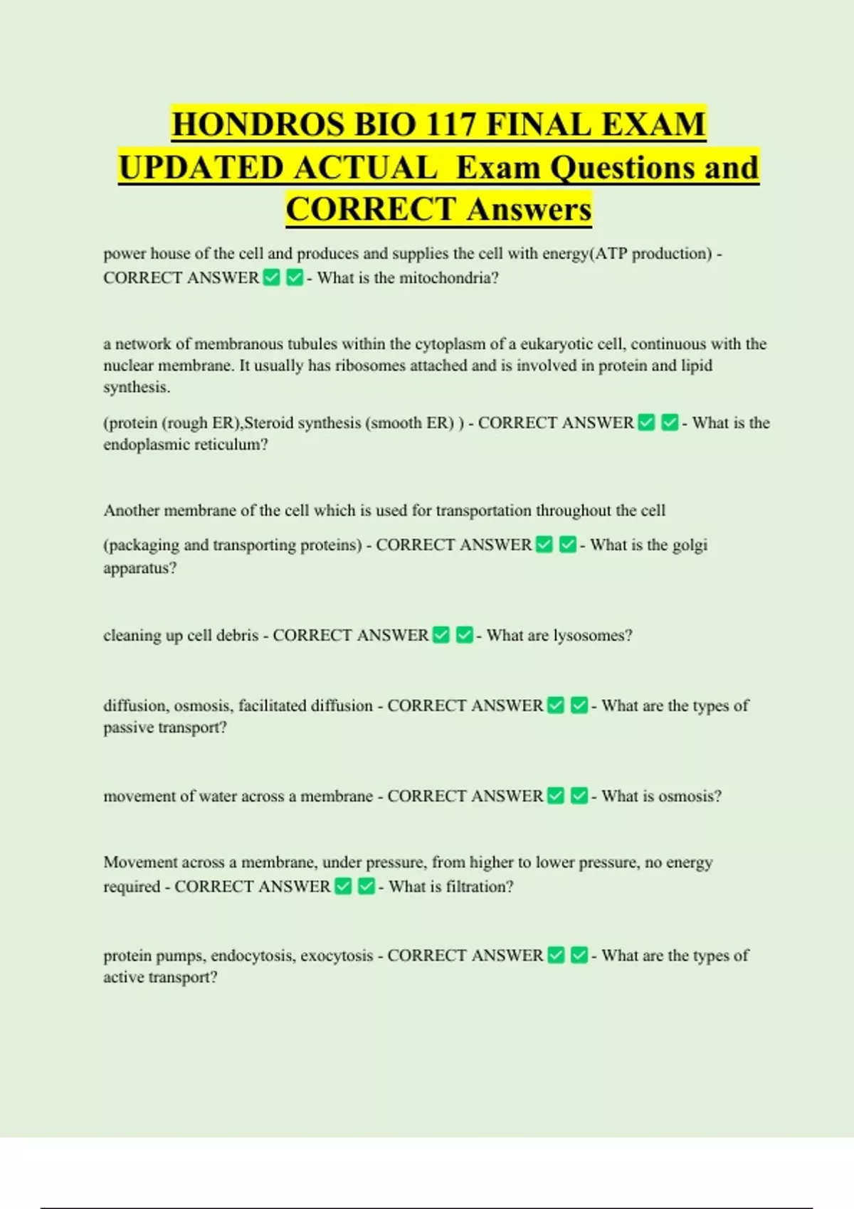 (packaging and transporting proteins) - CORRECT ANSWER - What is the golgi