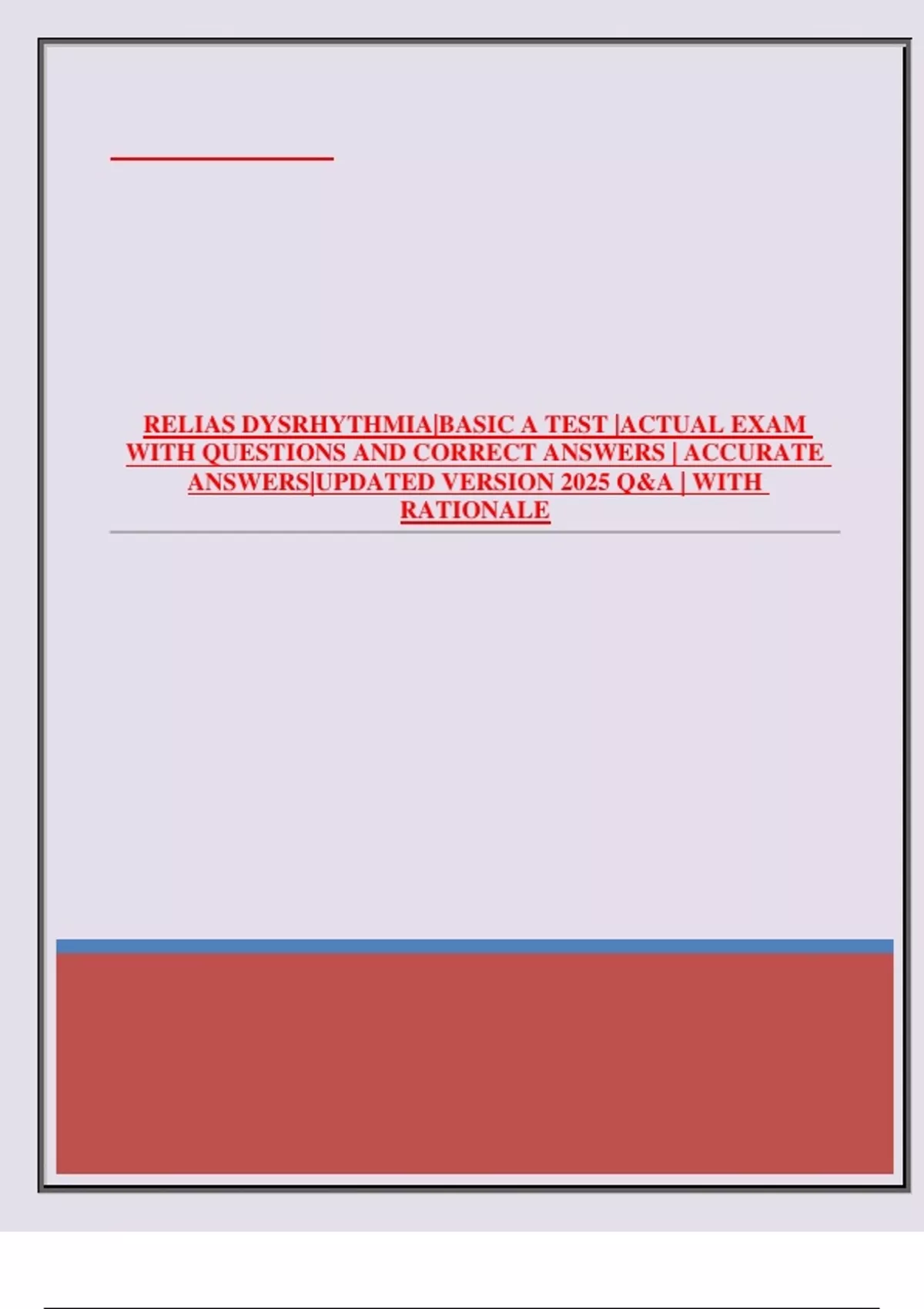 RELIAS DYSRHYTHMIA|BASIC A TEST |ACTUAL EXAM WITH QUESTIONS AND CORRECT ANSWERS | ACCURATE ANSWERS|UPDATED VERSION 2025 Q&A | WITH RATIONALE