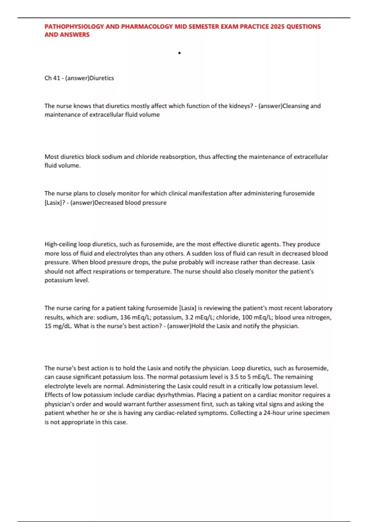 ,PATHOPHYSIOLOGY AND PHARMACOLOGY MID SEMESTER EXAM PRACTICE 2025 QUESTIONS