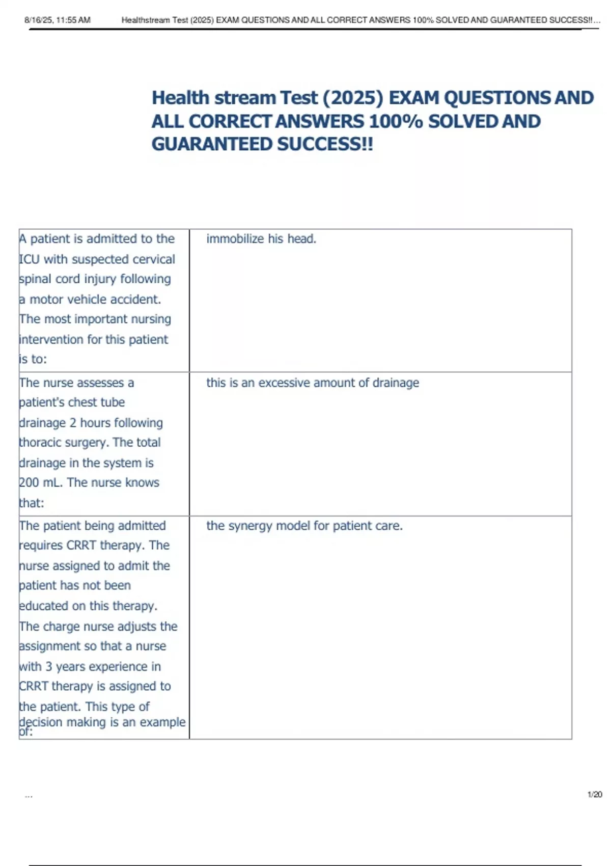 , 8/16/25, 11:55 AM Healthstream Test (2025) EXAM QUESTIONS AND ALL CORRECT ANSWERS 100% SOLVED AND GUARANTEED SUCCESS!!…