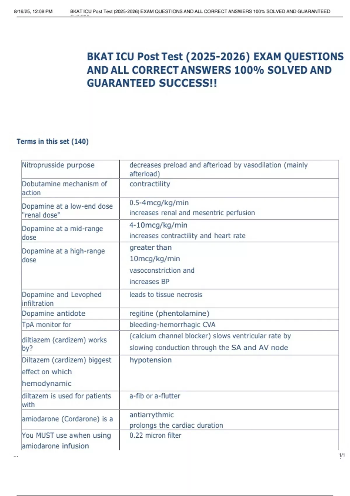 , 8/16/25, 12:08 PM BKAT ICU Post Test (2025-2026) EXAM QUESTIONS AND ALL CORRECT ANSWERS 100% SOLVED AND GUARANTEED