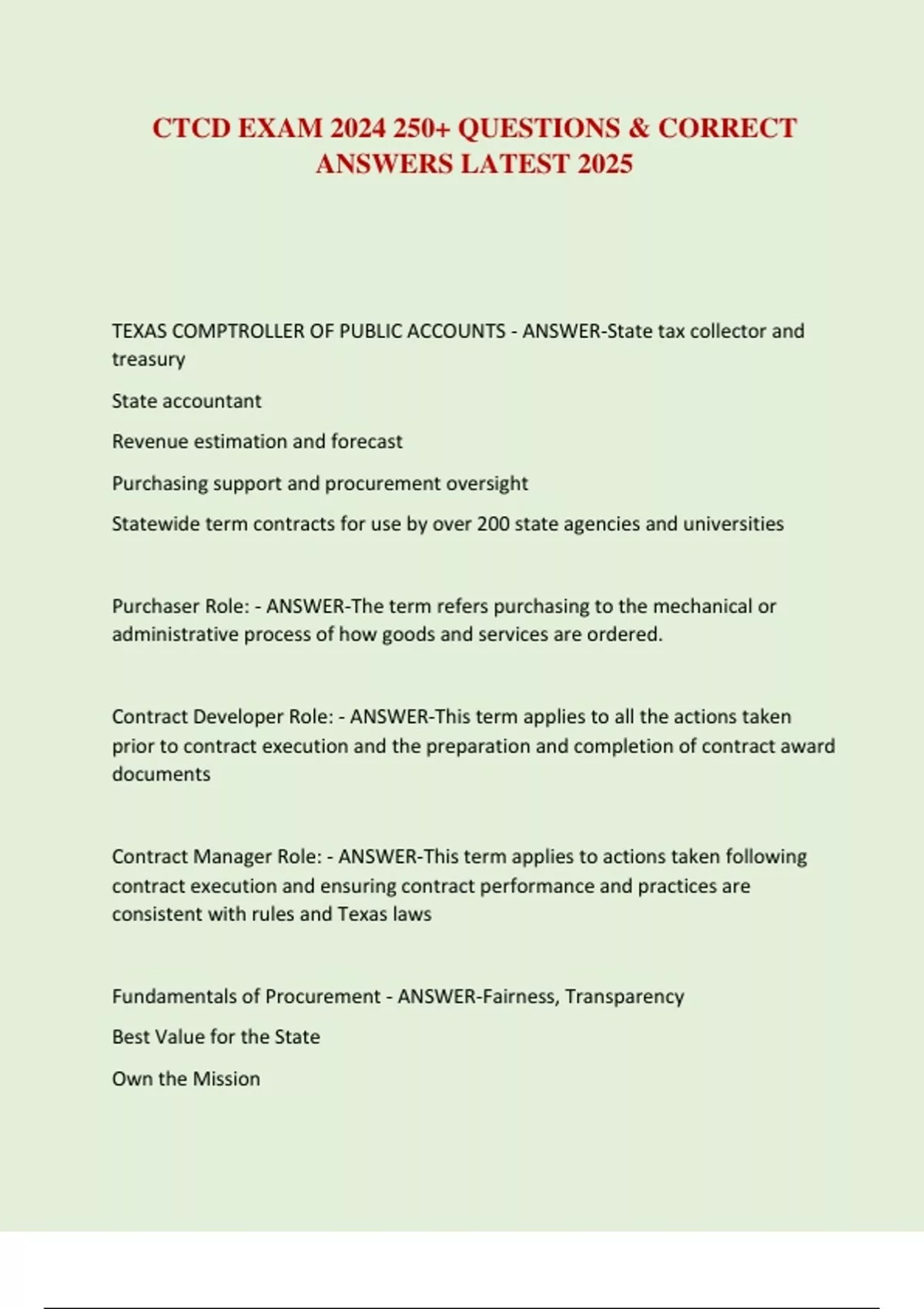 CTCD EXAM 2024 250+ QUESTIONS & CORRECT