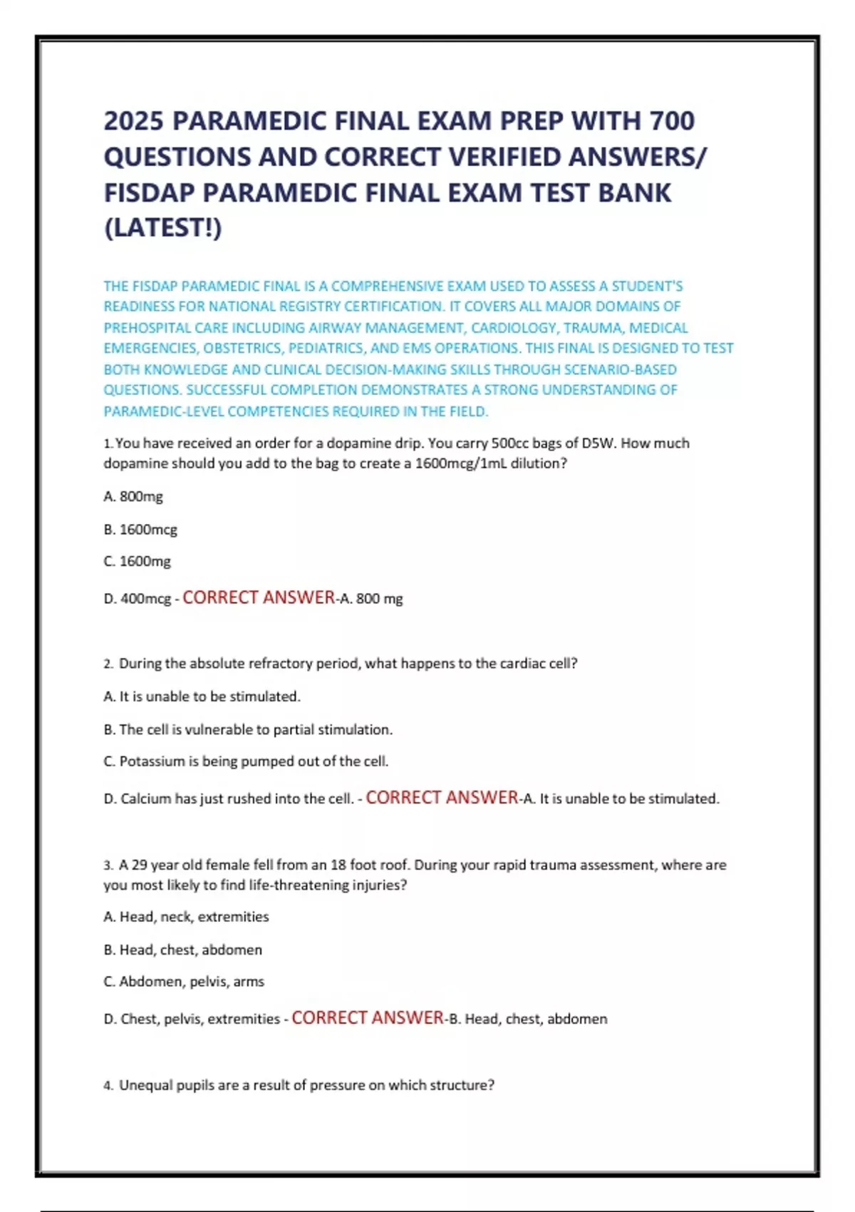 FISDAP PARAMEDIC FINAL EXAM TEST BANK