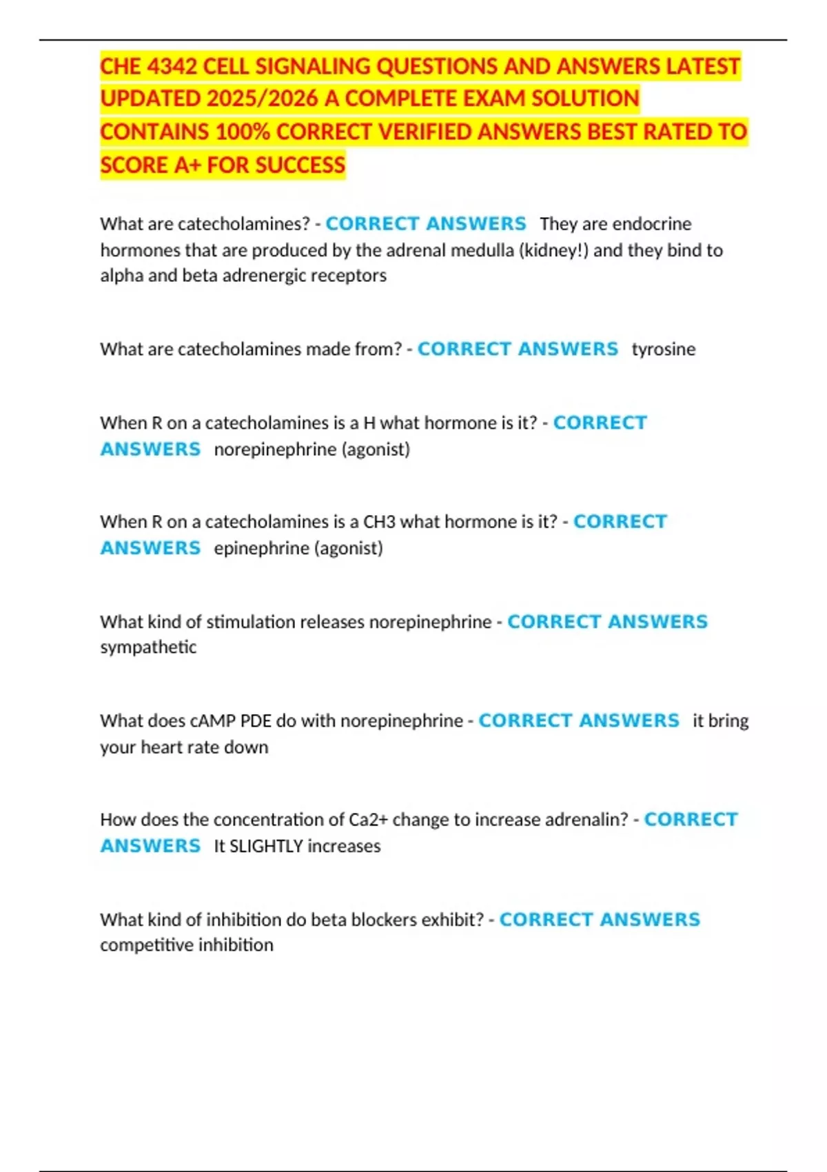CHE 4342 CELL SIGNALING QUESTIONS AND ANSWERS LATEST UPDATED 2025/2026 A COMPLETE EXAM SOLUTION CONTAINS 100% CORRECT VERIFIED ANSWERS BEST RATED TO SCORE A+ FOR SUCCESS