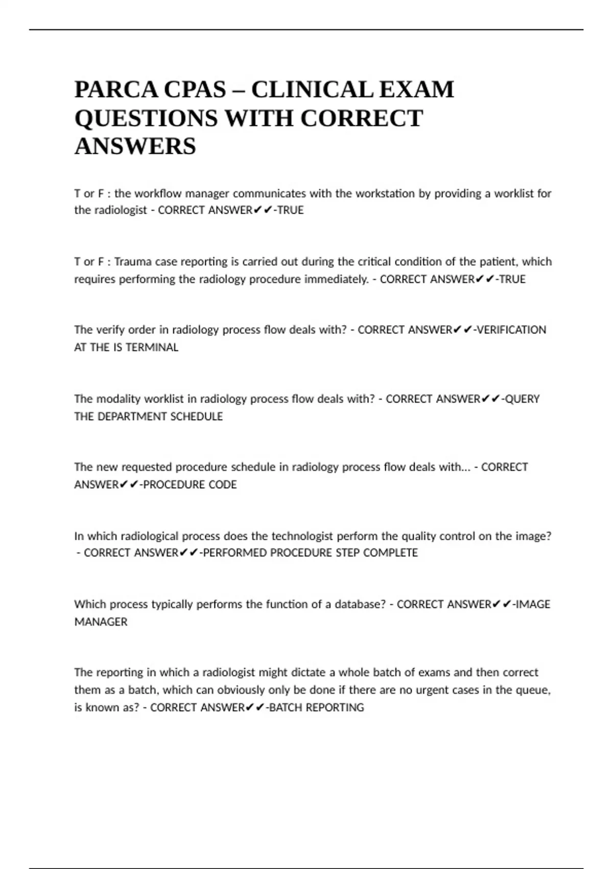 PARCA CPAS – CLINICAL EXAM QUESTIONS WITH CORRECT ANSWERS