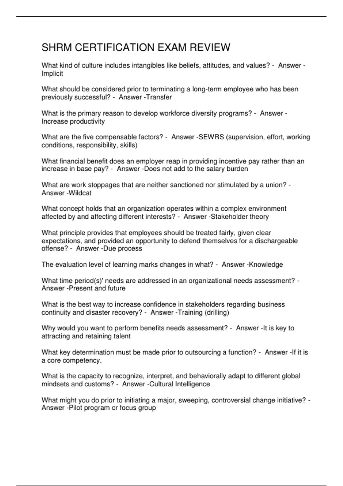 SHRM CERTIFICATION EXAM REVIEW