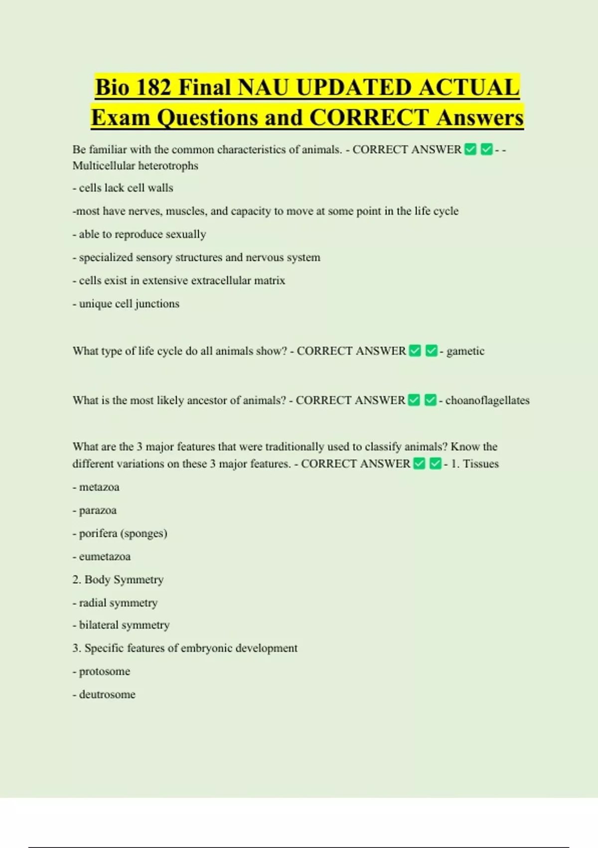Be familiar with the common characteristics of animals. - CORRECT ANSWER --