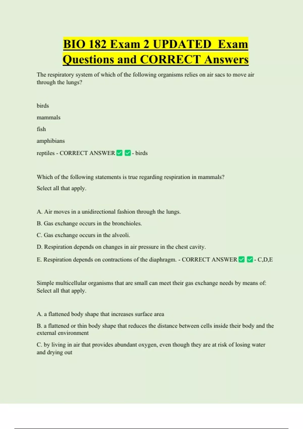 E. Respiration depends on contractions of the diaphragm. - CORRECT ANSWER - C,D,E