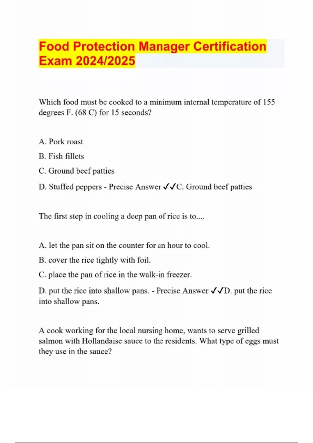 Food Protection Manager Certification Exam 2025 Latest UpdateFood Protection Manager Certification Exam 2025 Latest Update