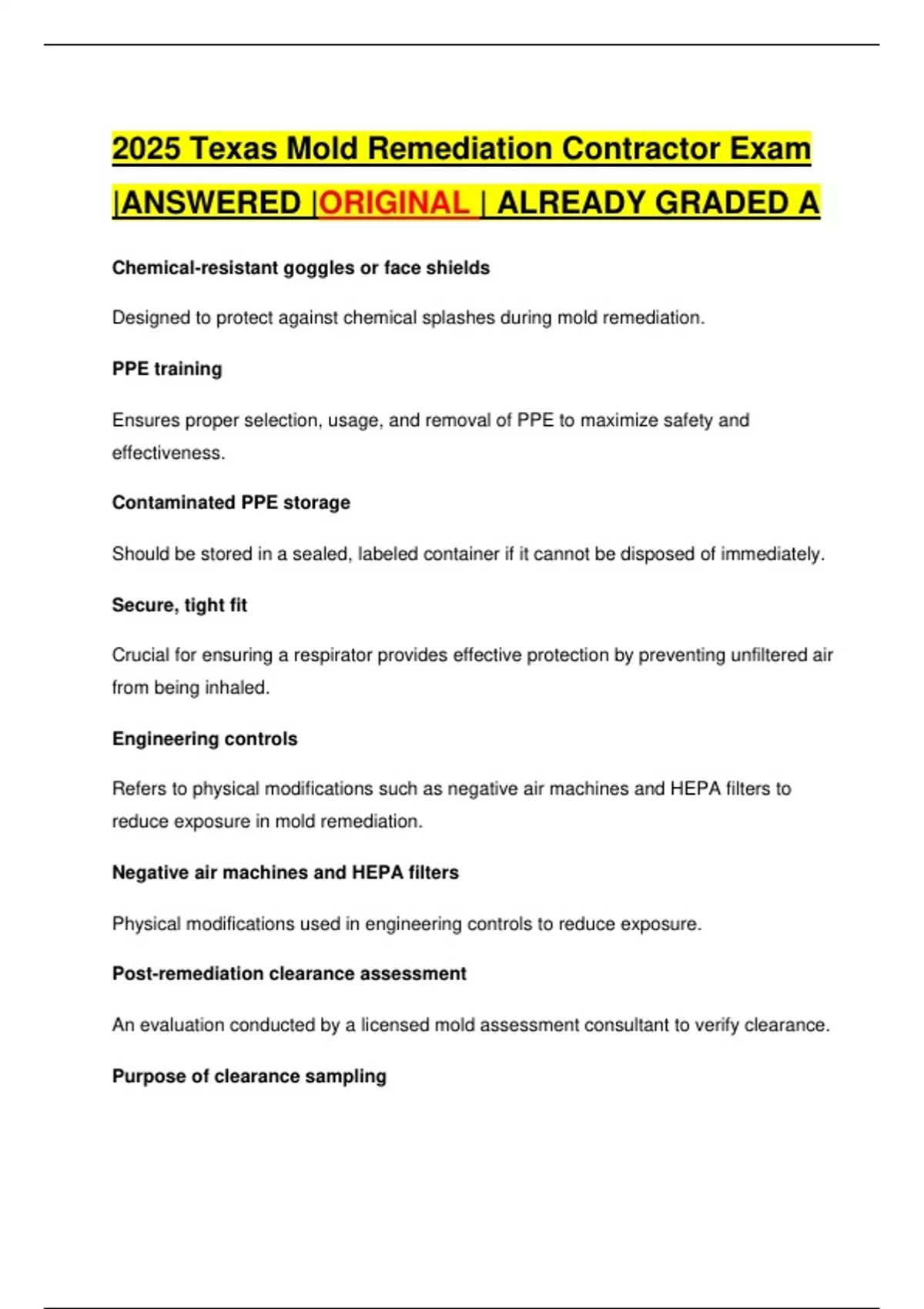 2025 Texas Mold Remediation Contractor Exam