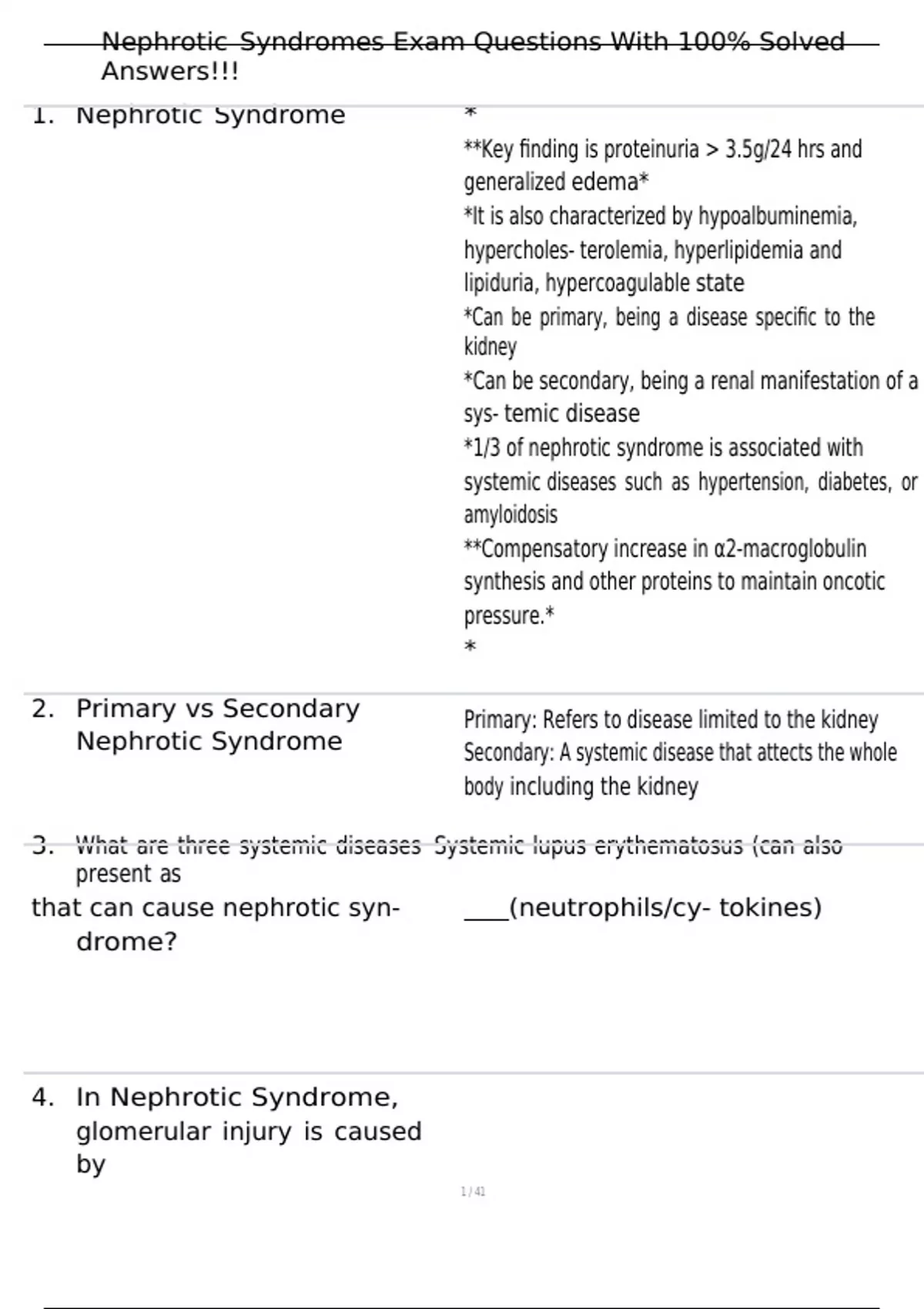 , Nephrotic Syndromes Exam Questions With 100% Solved
