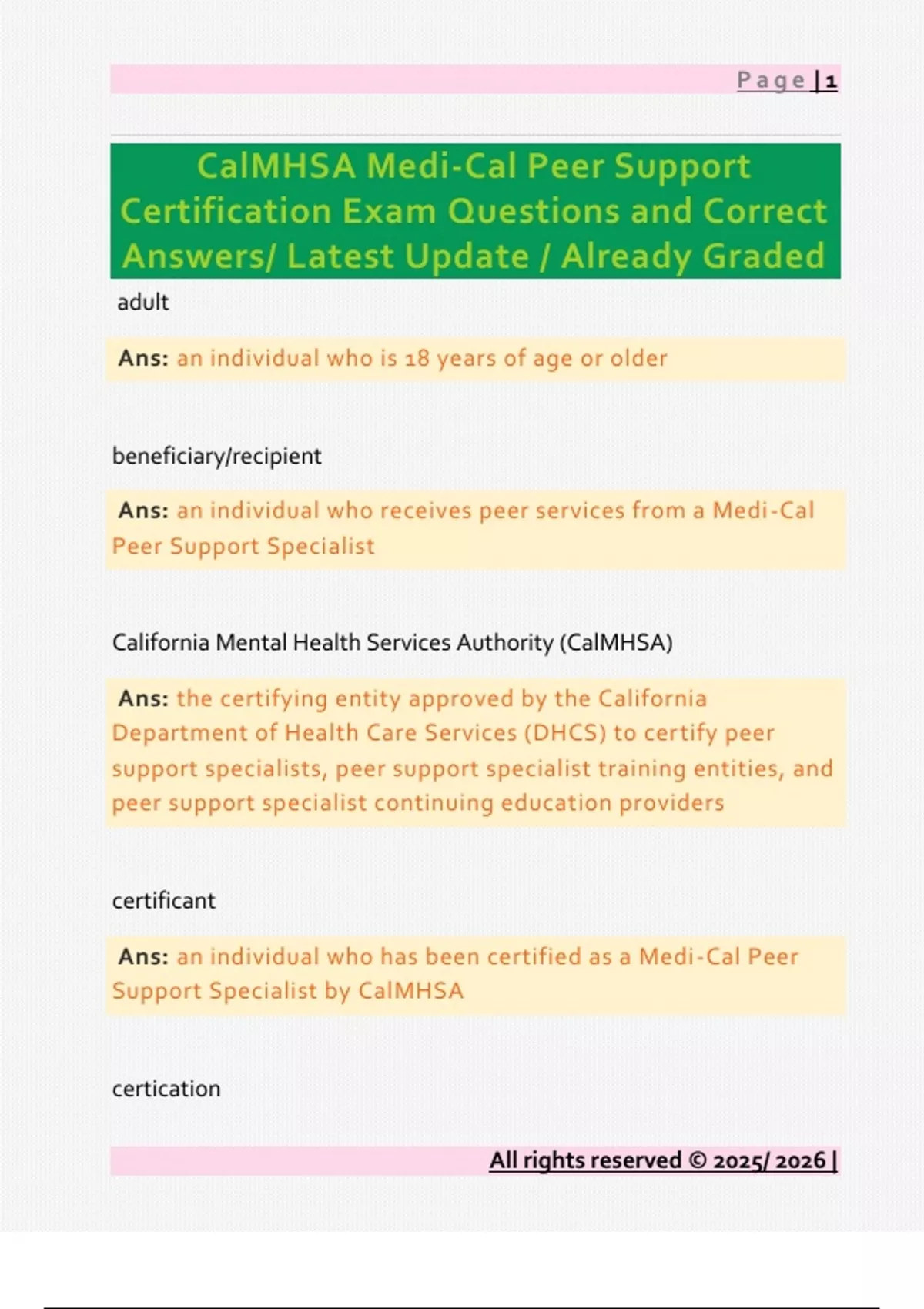 Ans: indicated all requirements of a Medi-Cal Peer Support
