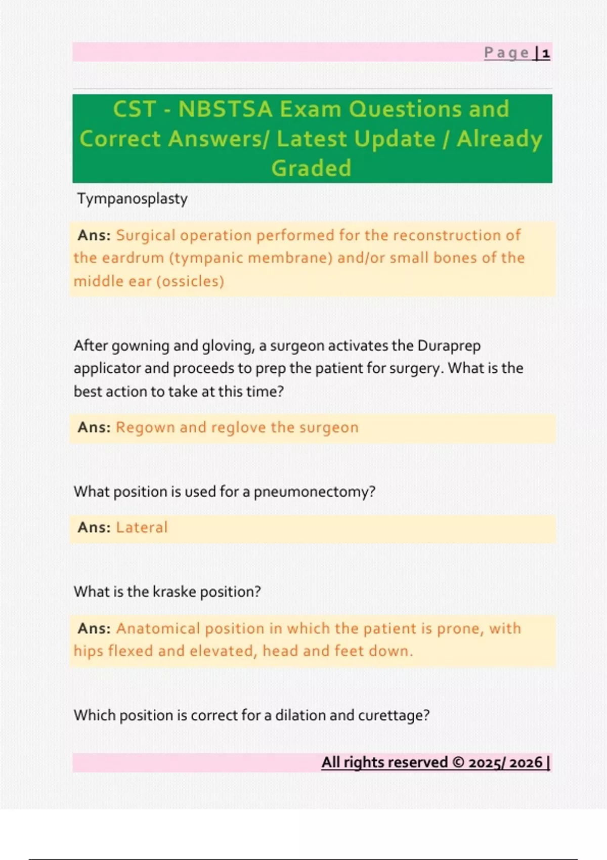 CST - NBSTSA Exam Questions and Correct Answers/ Latest Update / Already Graded