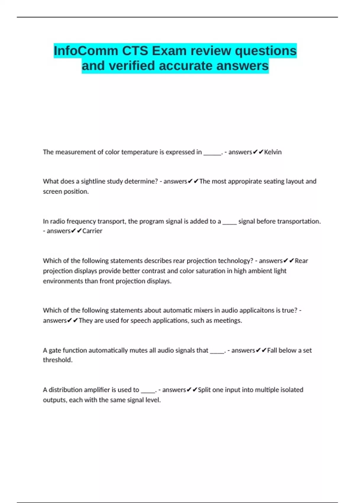 A distribution amplifier is used to ____. - answers✔✔Split one input into multiple isolated