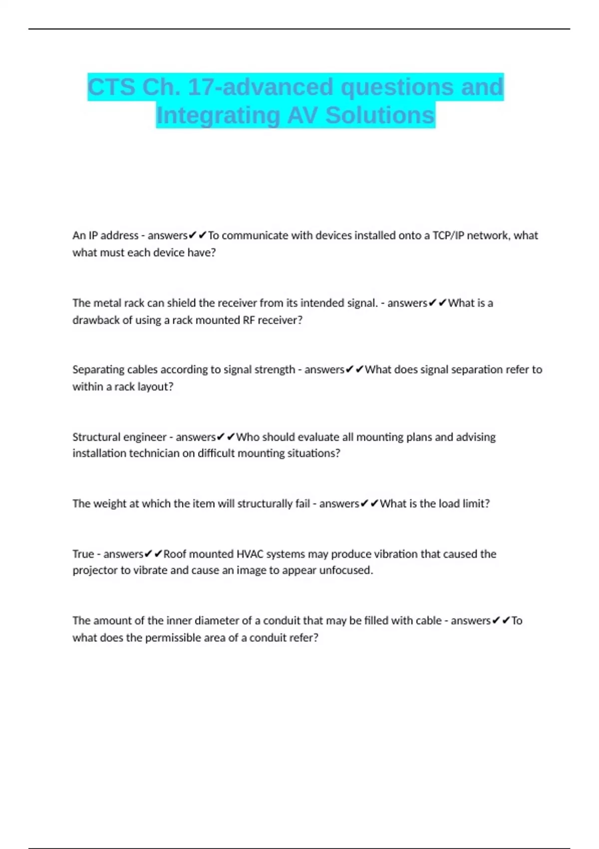 CTS Ch. 17-advanced questions and Integrating AV Solutions.