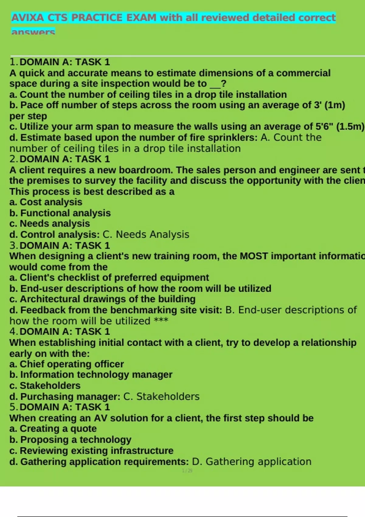 ΑVIXA CTS PRACTICE EXAM with all reviewed detailed correct