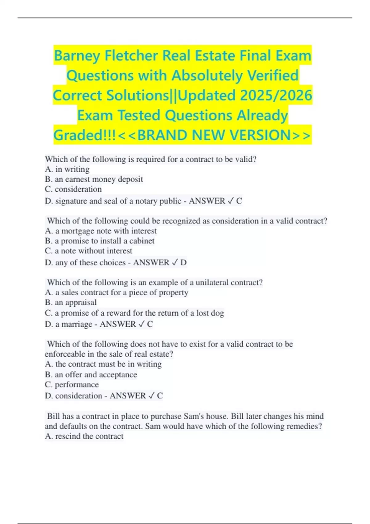 D. the seller may keep the deposit as liquidated damages - ANSWER ✓ B