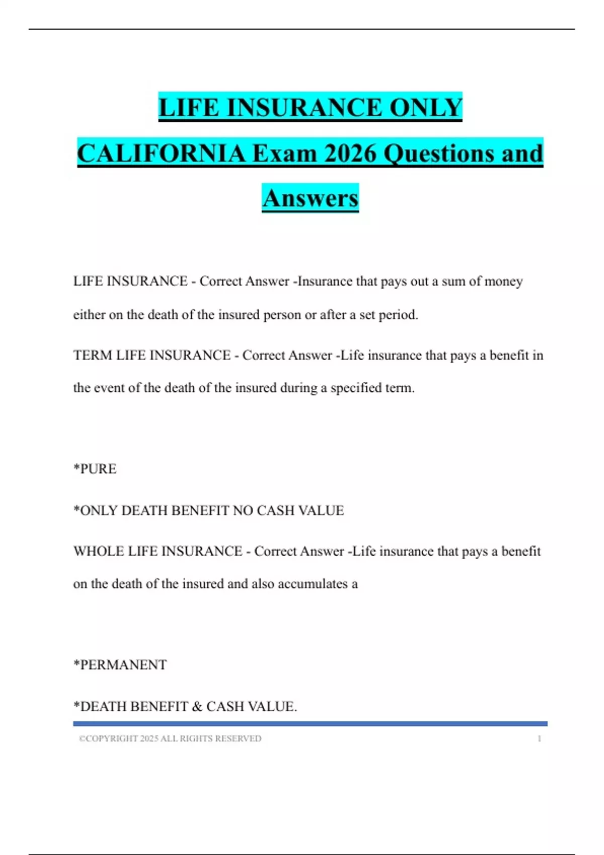 LIFE INSURANCE - Correct Answer -Insurance that pays out a sum of money