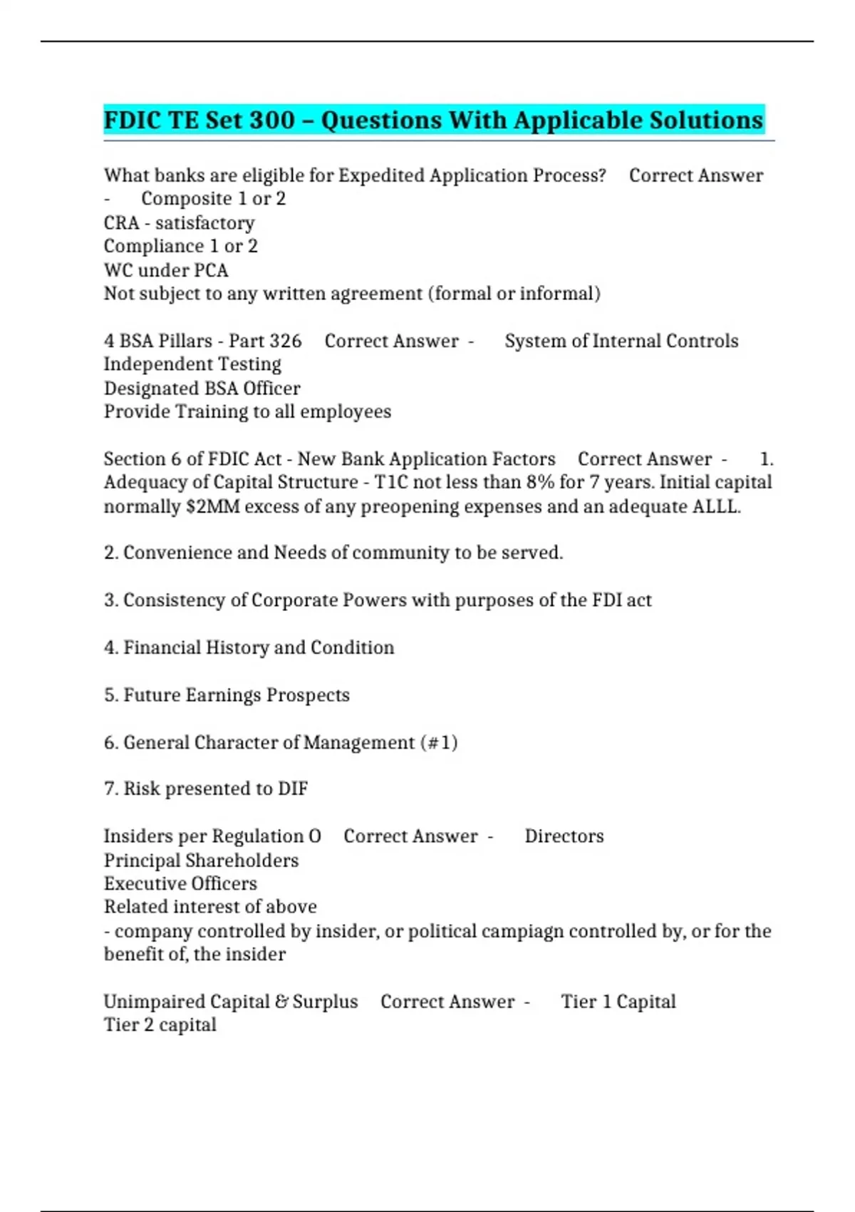 Section 6 of FDIC Act - New Bank Application Factors Correct Answer - 1.