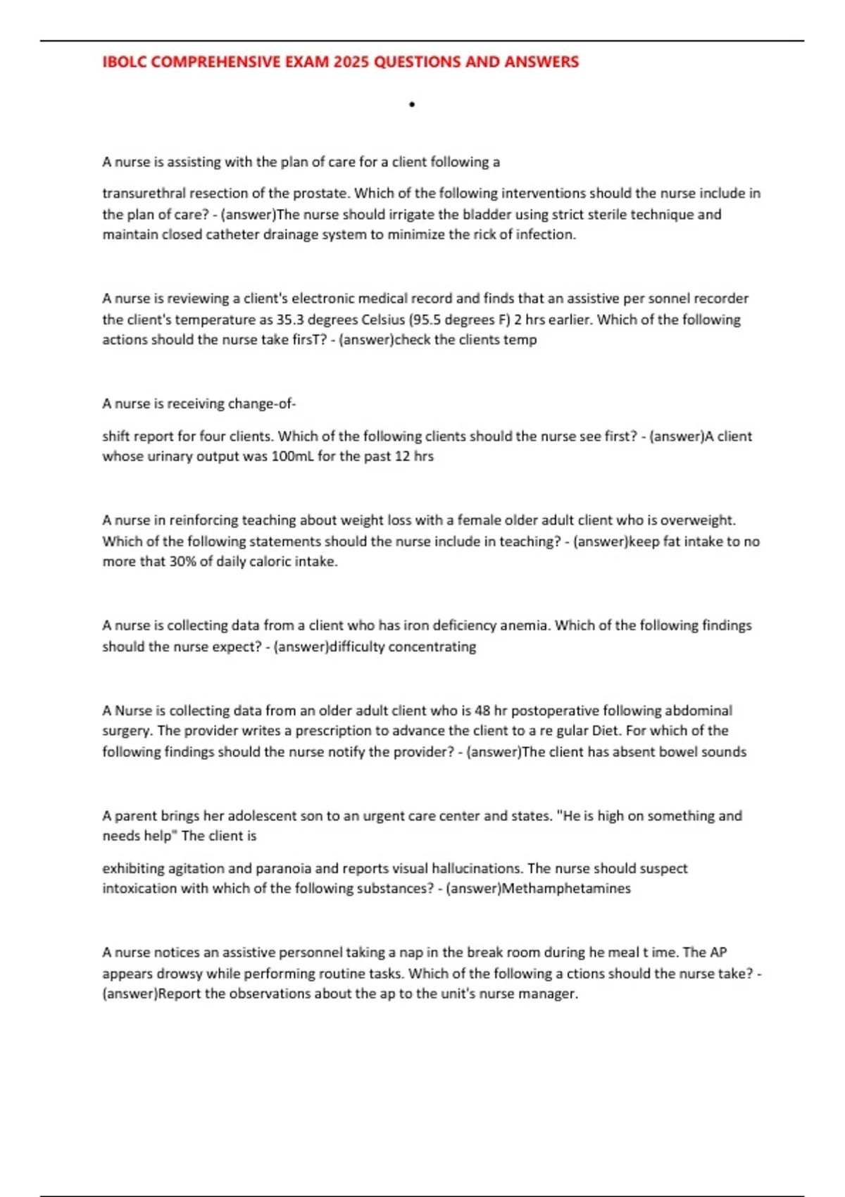 IBOLC COMPREHENSIVE EXAM 2025 QUESTIONS AND ANSWERS