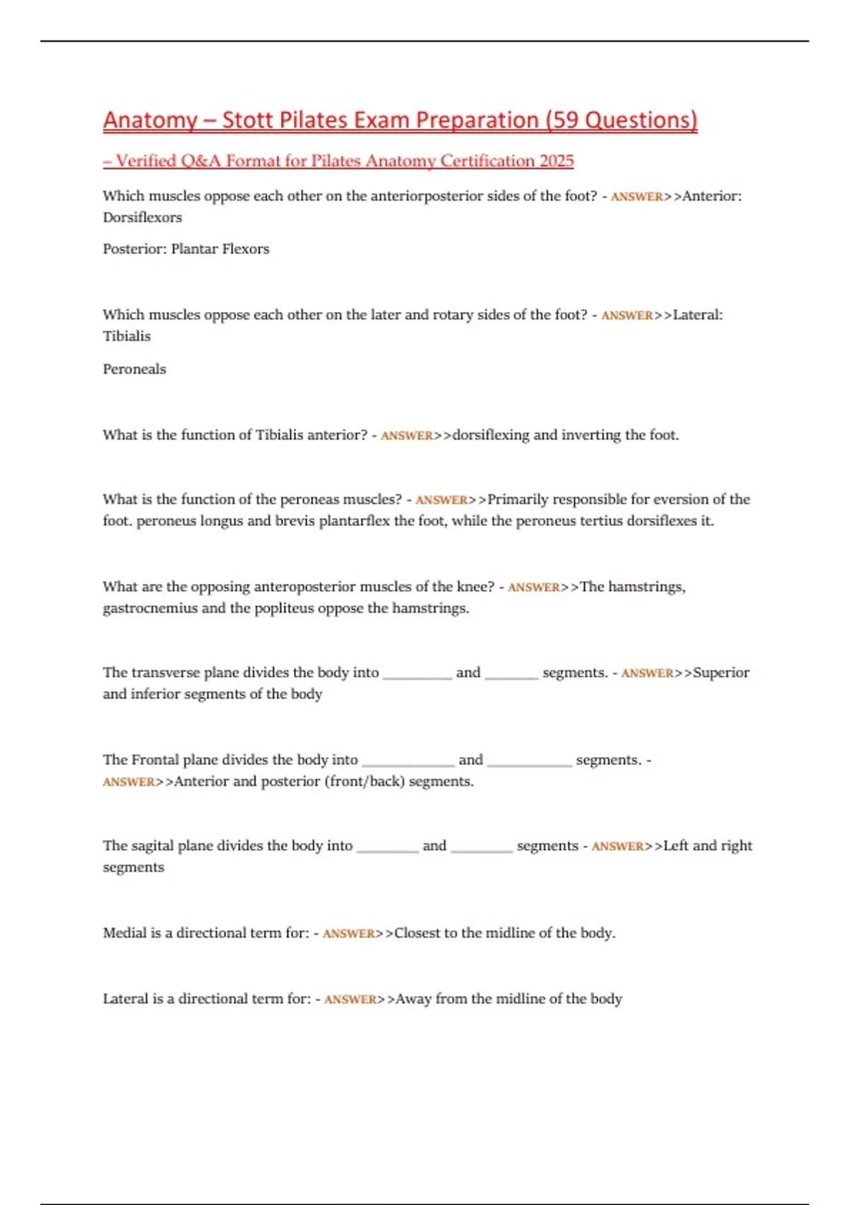 Anatomy – Stott Pilates Exam Preparation (59 Questions)