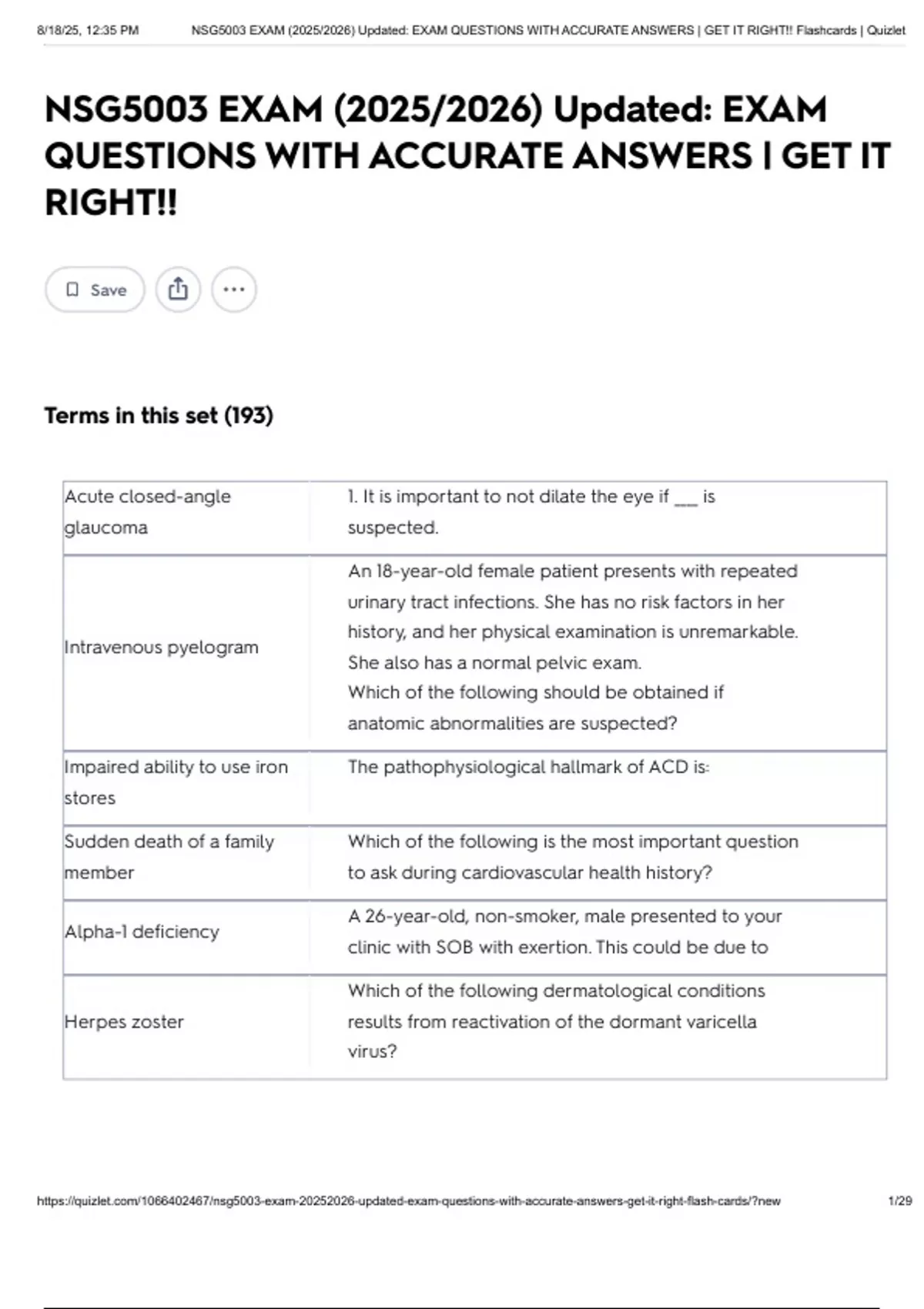 , 8/18/25, 12:35 PM NSG5003 EXAM (2025/2026) Updated: EXAM QUESTIONS WITH ACCURATE ANSWERS | GET IT RIGHT!! Flashcards | Quizlet