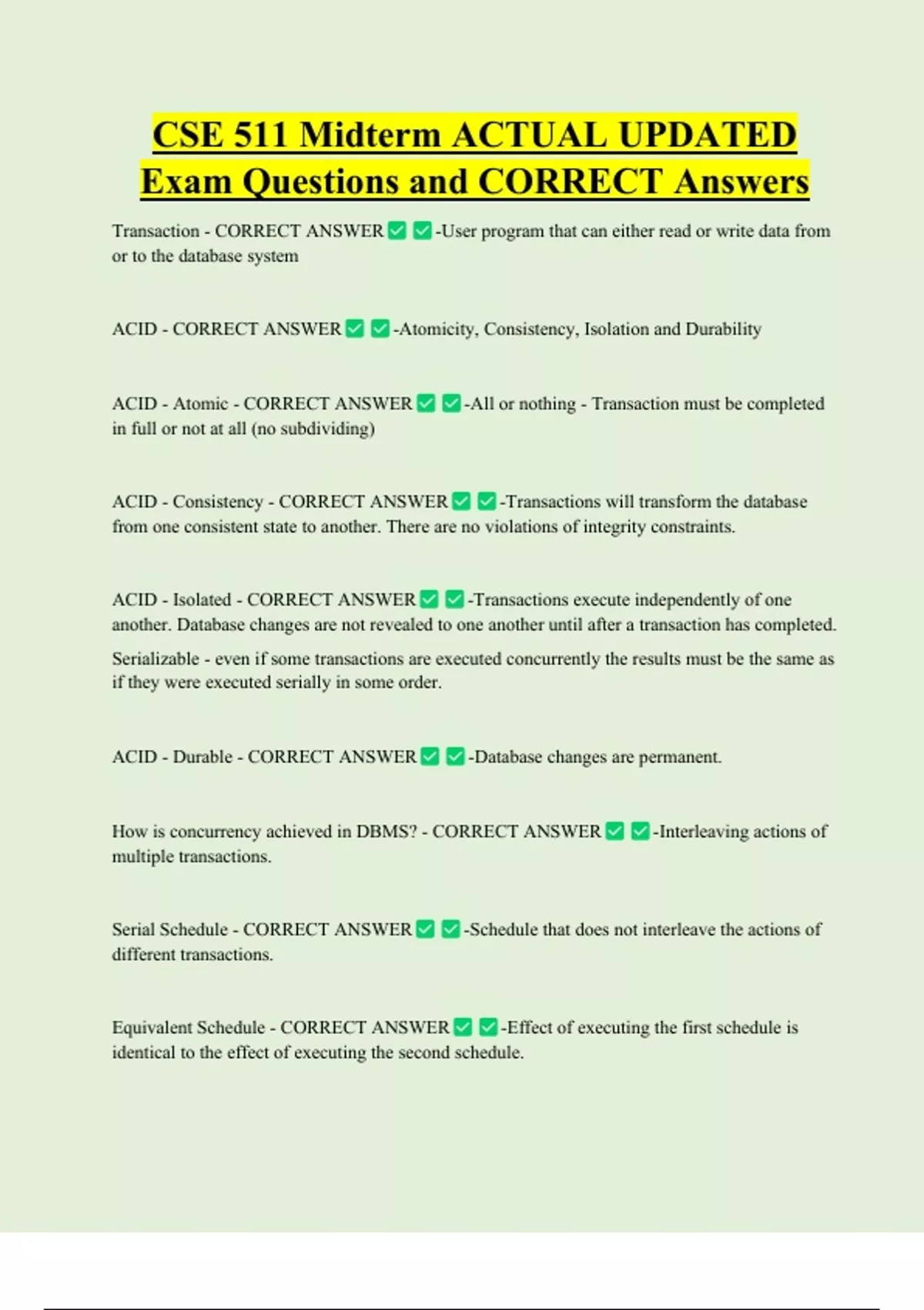 , Serializable Schedule - CORRECT ANSWER -A schedule that is equivalent to some serial
