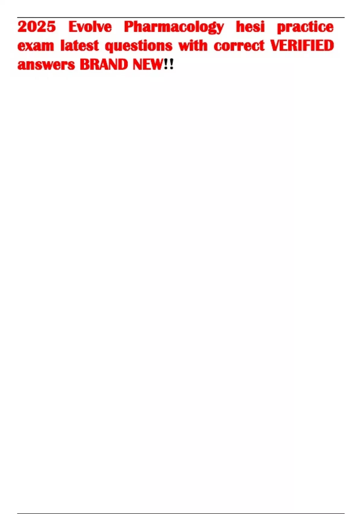 2025 Evolve Pharmacology hesi practice exam latest questions with correct VERIFIED answers BRAND NEW!!