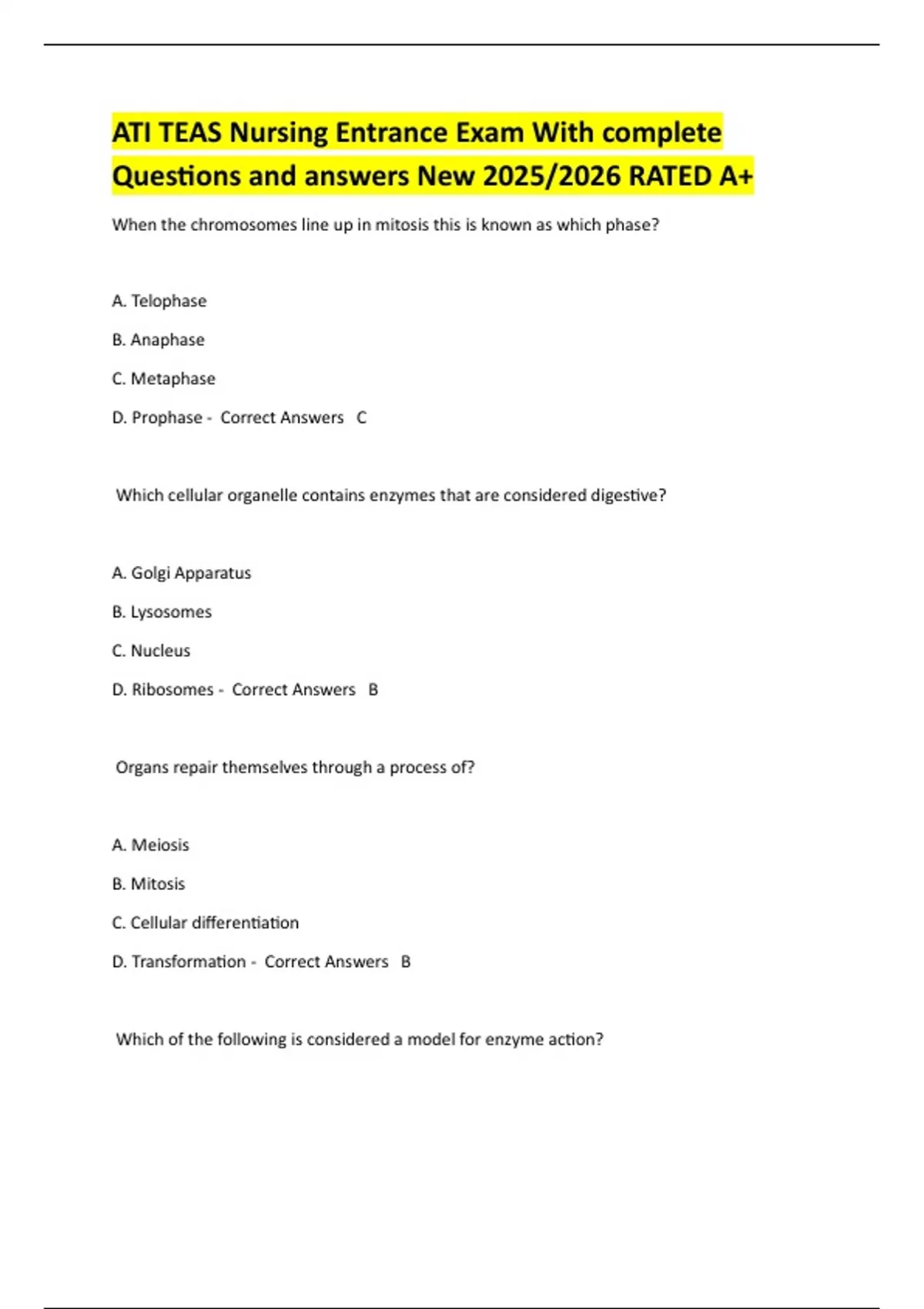 D. Prophase - Correct Answers C