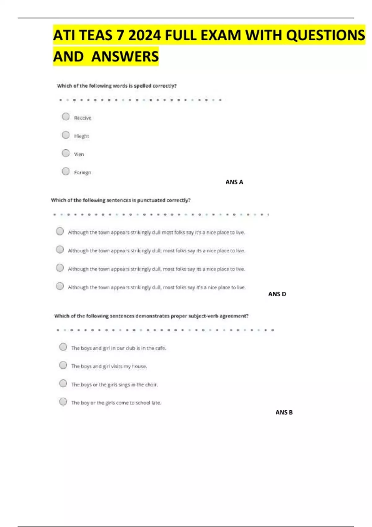 ATI TEAS 7 2024 FULL EXAM WITH QUESTIONS