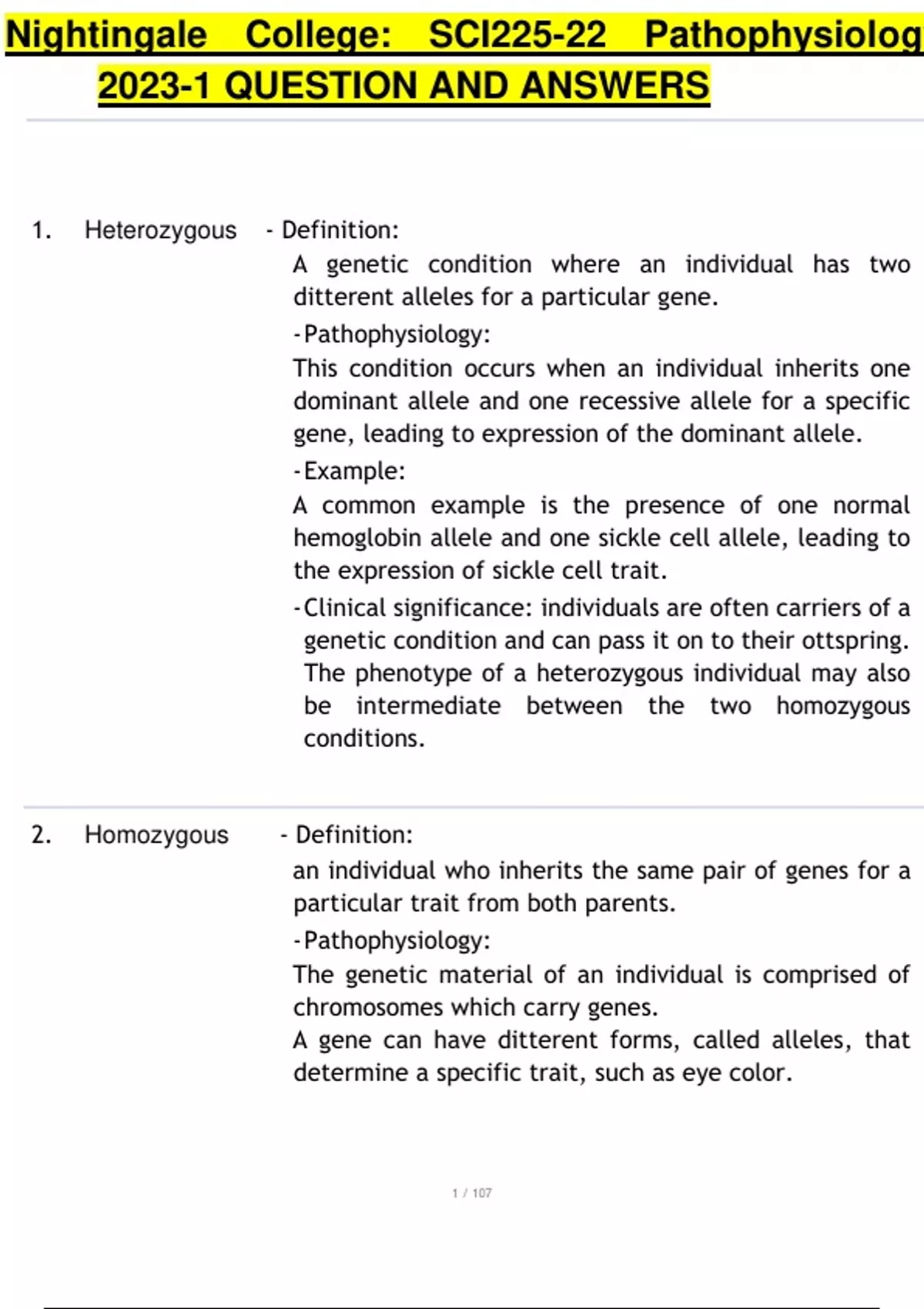 Nightingale College: SCI225-22 Pathophysiology 2023-1 (Midterm Feb 27, 2023) QUESTION AND ANSWERS