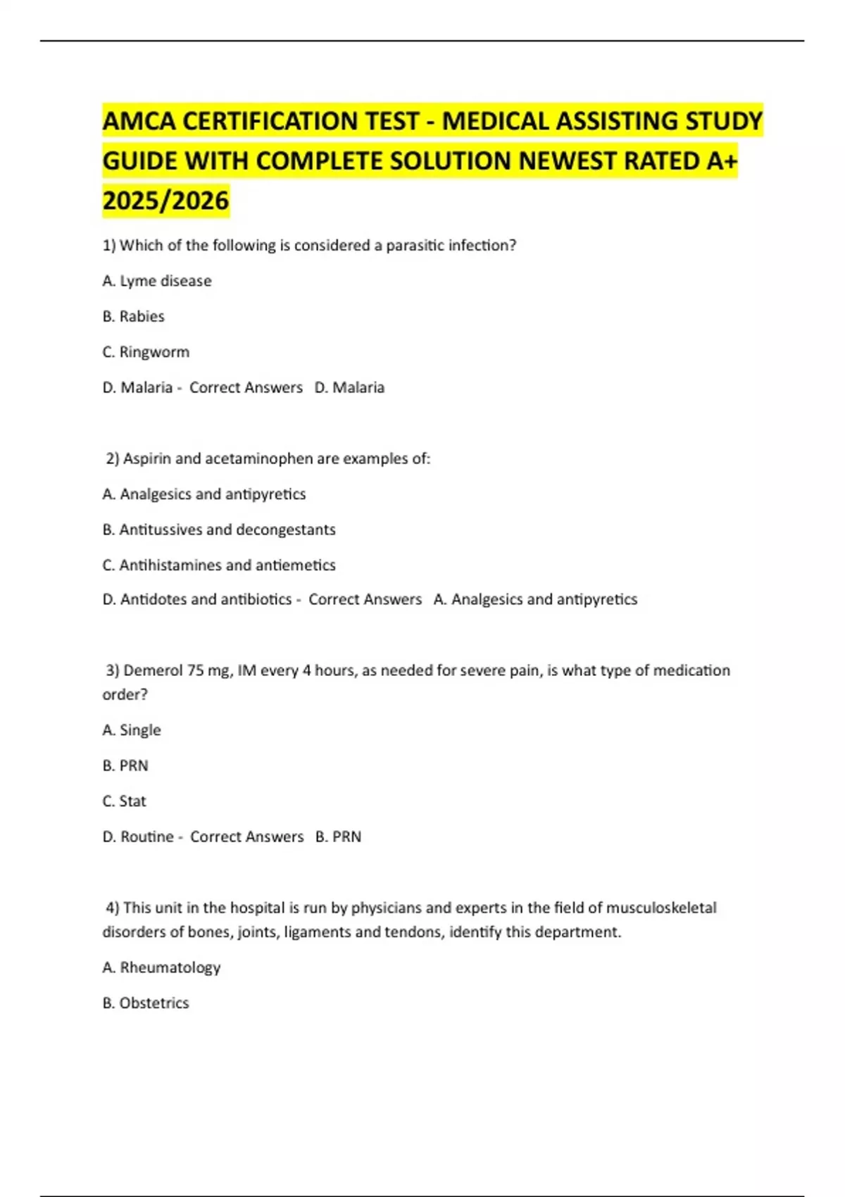 D. Oncology - Correct Answers A. Rheumatology