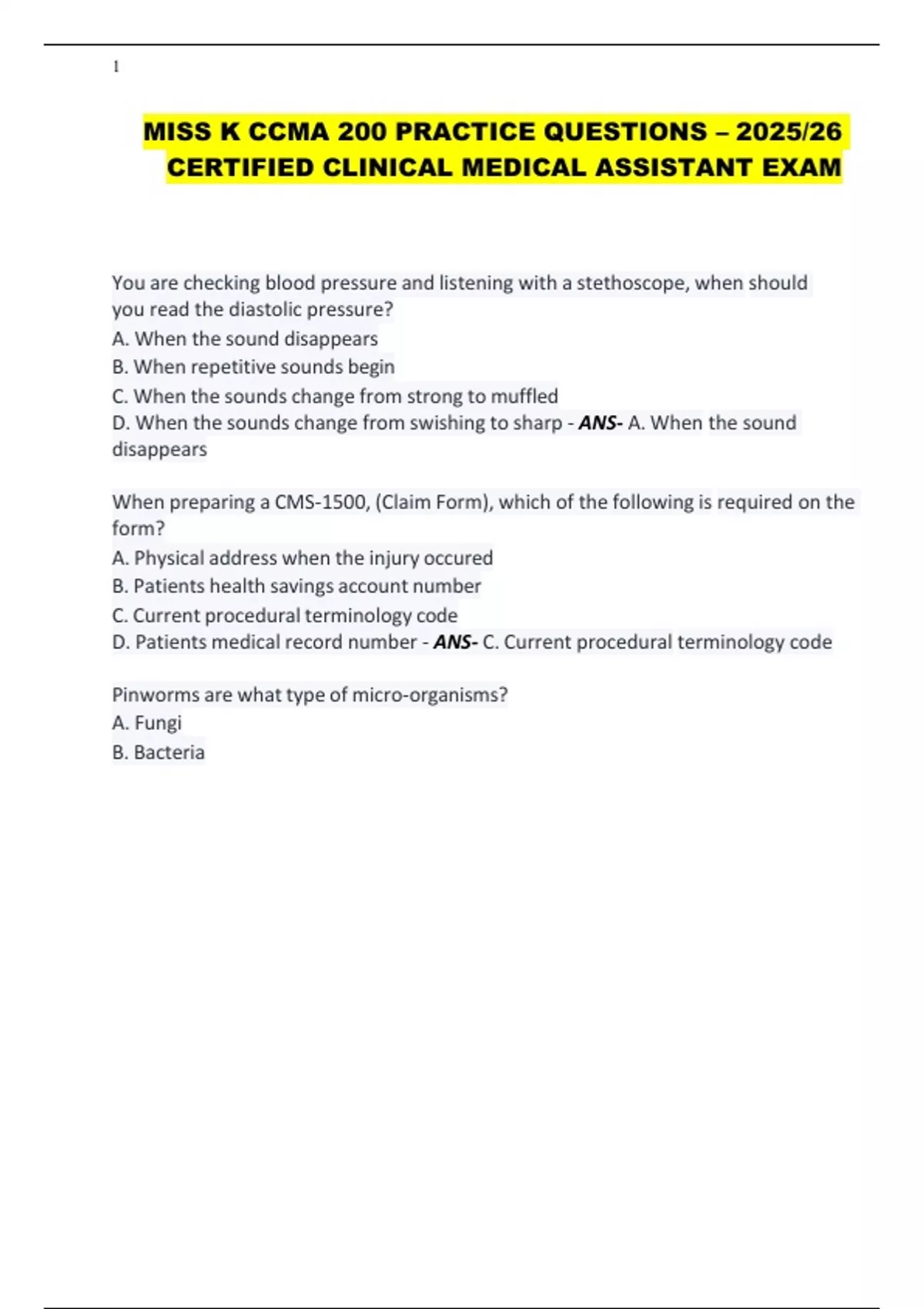 MISS K CCMA 200 PRACTICE QUESTIONS – 2025/26