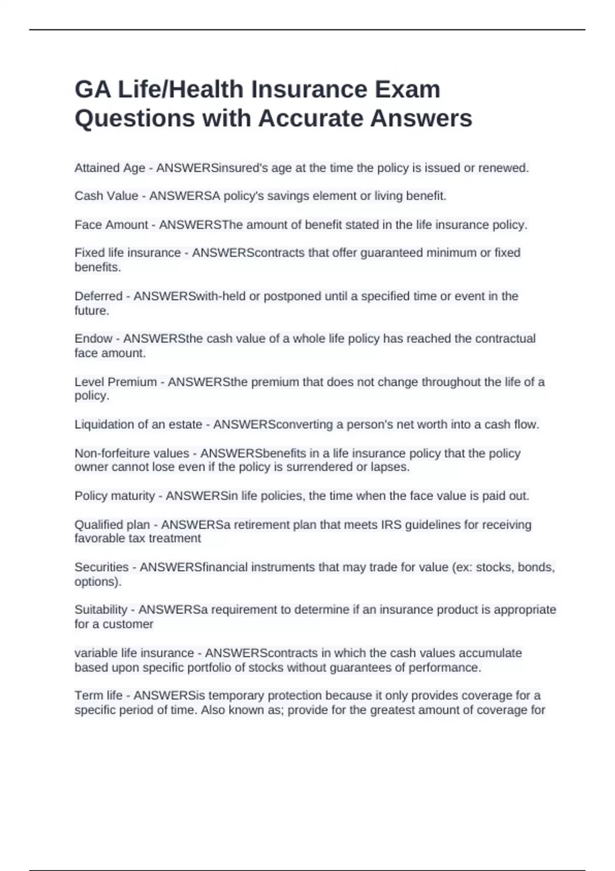 Term Life - ANSWERSProvide pure death protection - if the insured dies during the