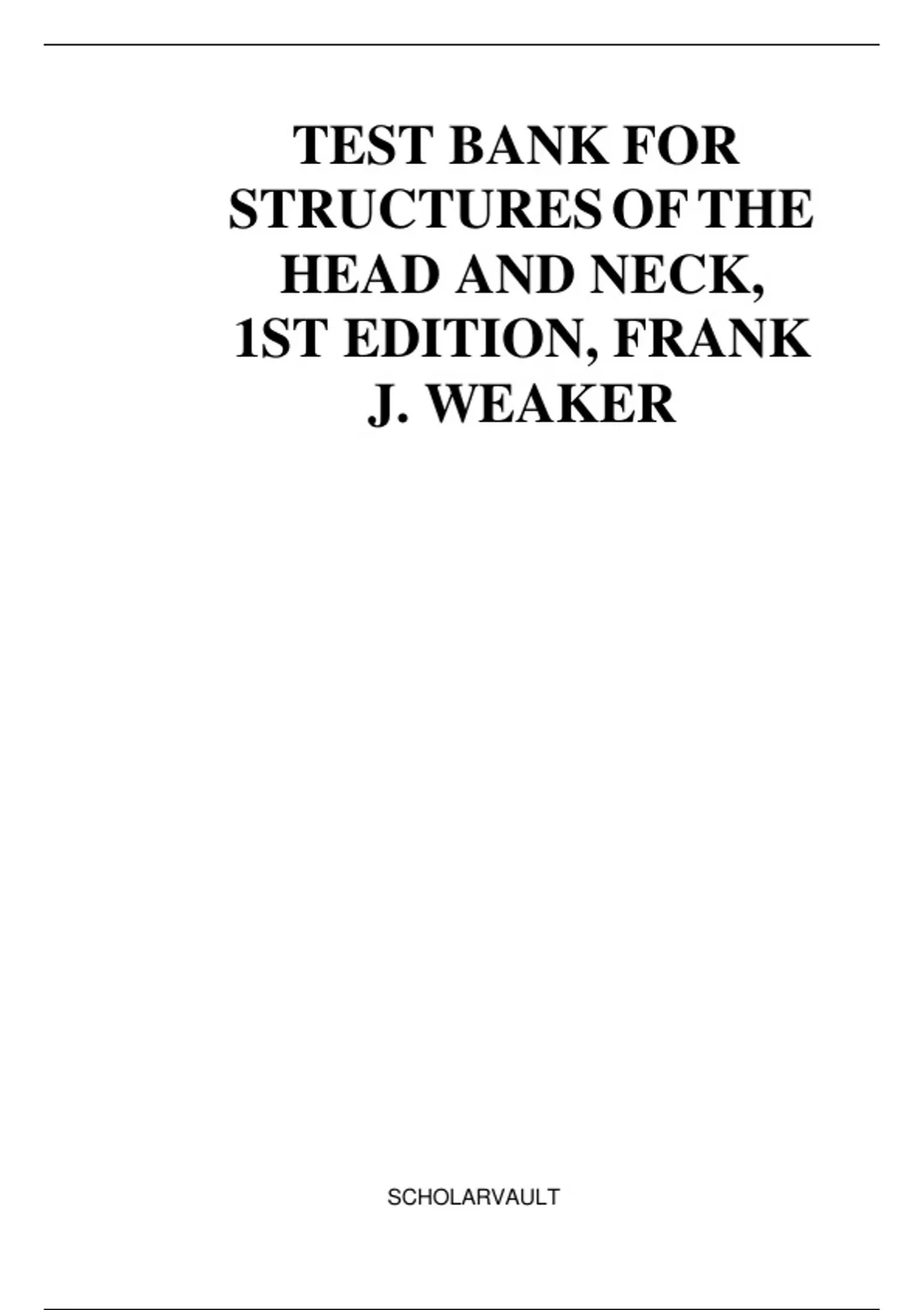 TEST BANK FOR STRUCTURES OF THE HEAD AND NECK, 1ST EDITION, FRANK J. WEAKER | VERIFIED QUESTIONS AND ANSWERS | COMPLETE GUIDE A+.