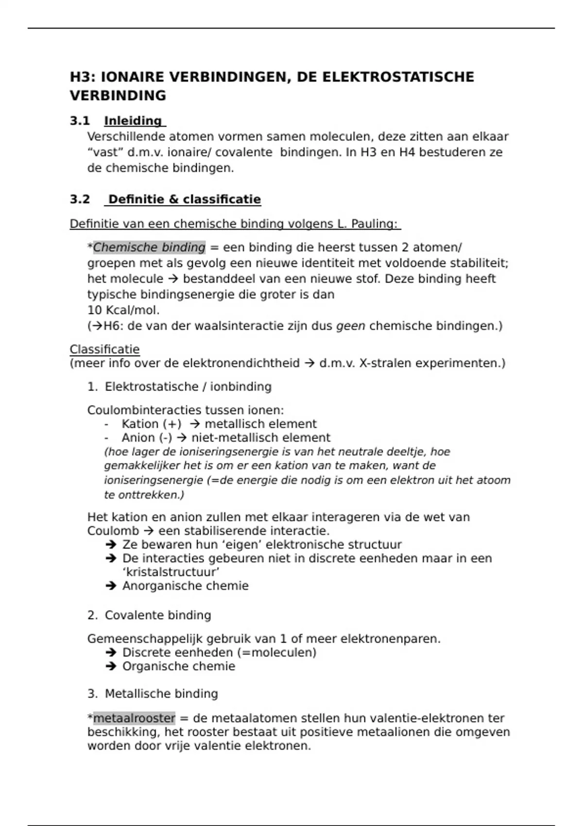 H3: IONAIRE VERBINDINGEN, DE ELEKTROSTATISCHE