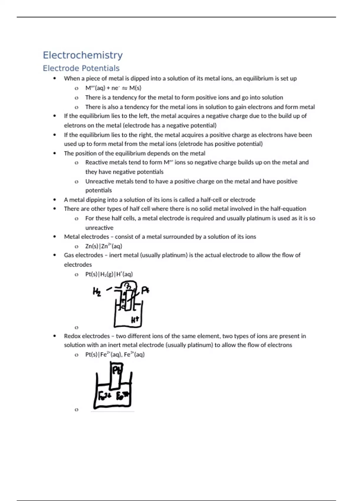 Gas electrodes – inert metal (usually platinum) is the actual electrode to allow the flow of