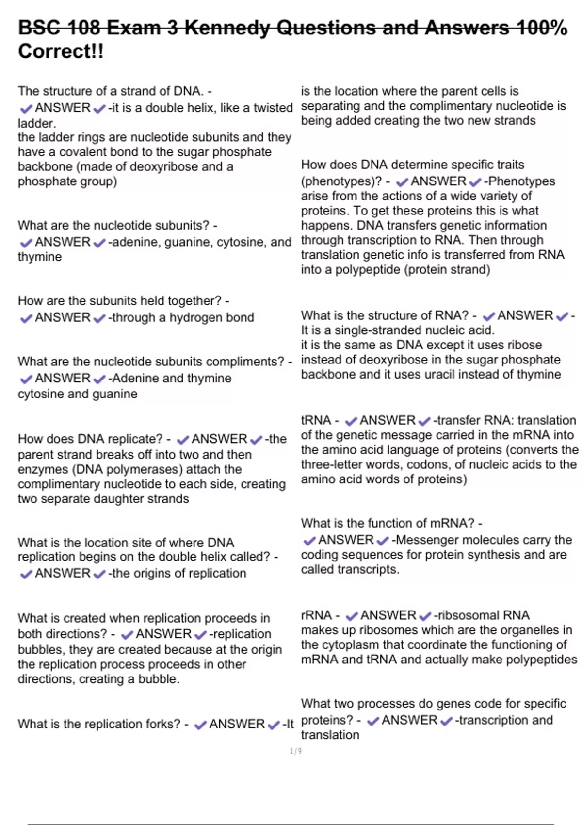 , BSC 108 Exam 3 Kennedy Questions and Answers 100%