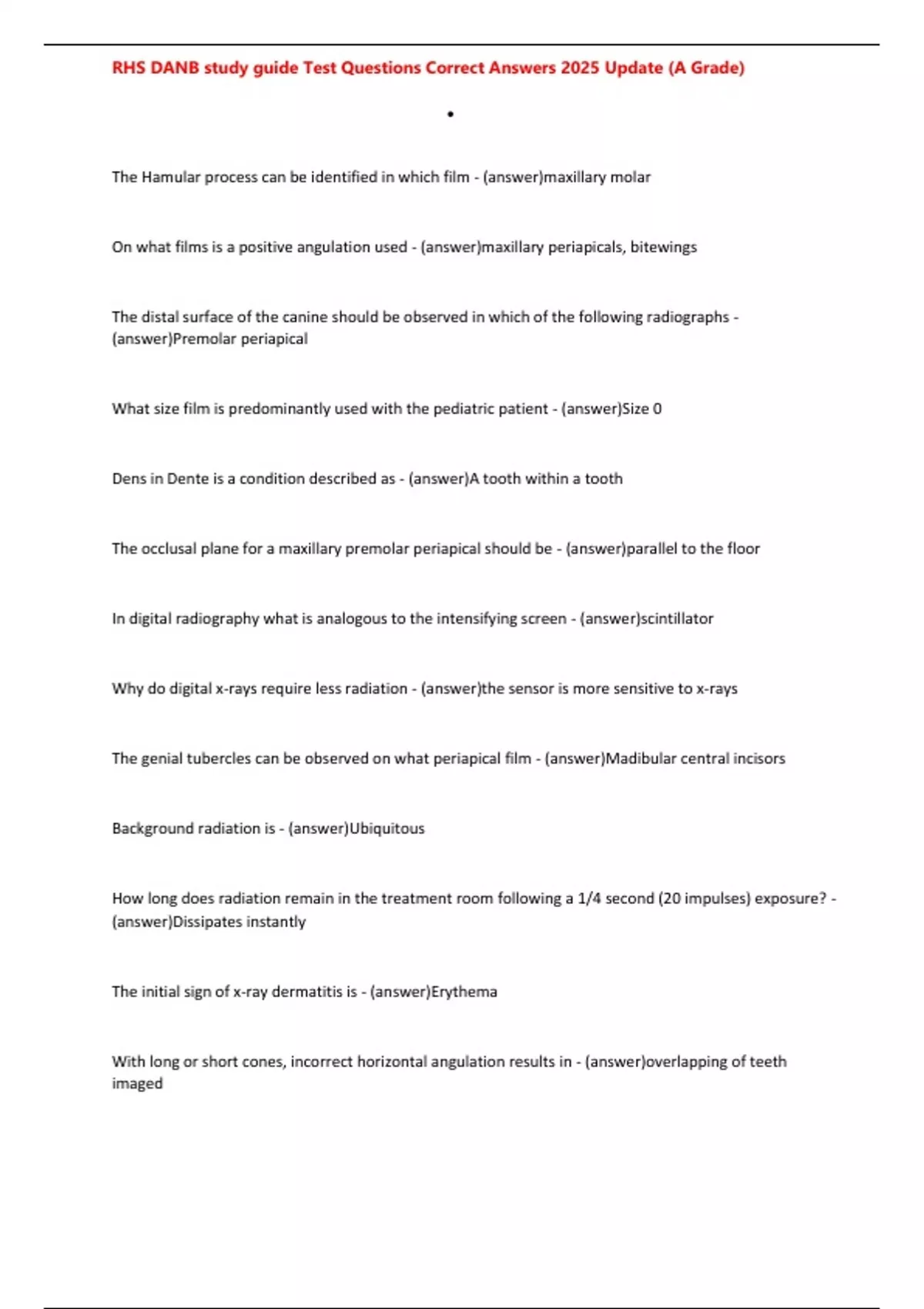 RHS DANB study guide Test Questions Correct Answers 2025 Update (A Grade)