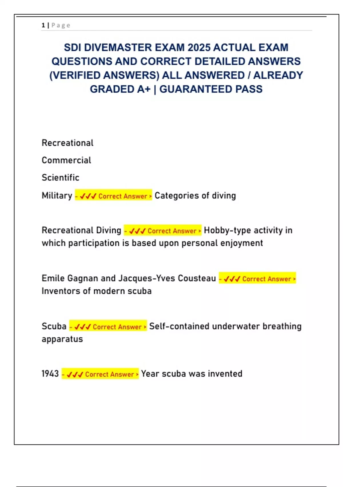1943 - ✔✔✔ Correct Answer > Year scuba was invented