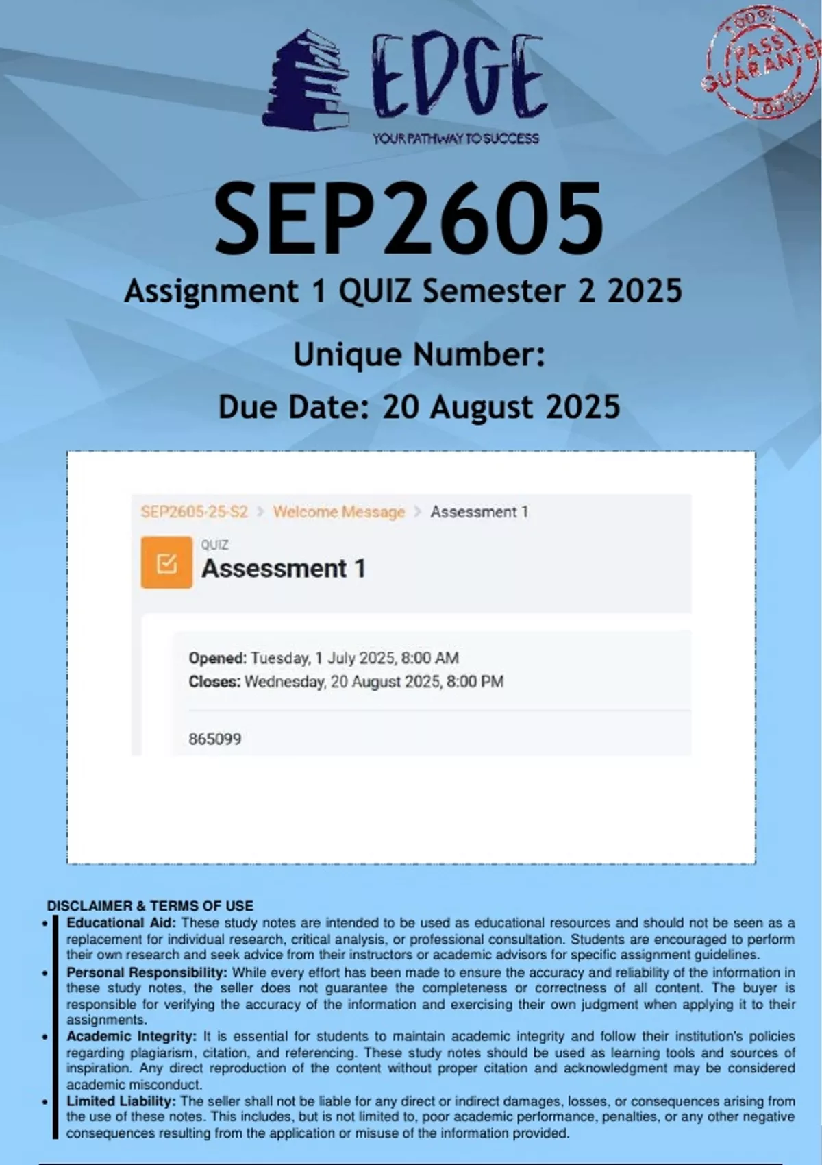 SEP2605 Assignment 1 (ANSWERS) Semester 2 2025 - DISTINCTION GUARANTEED