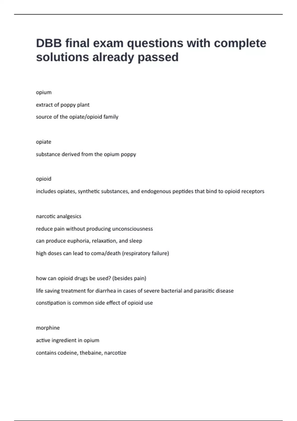 DBB final exam questions with complete
