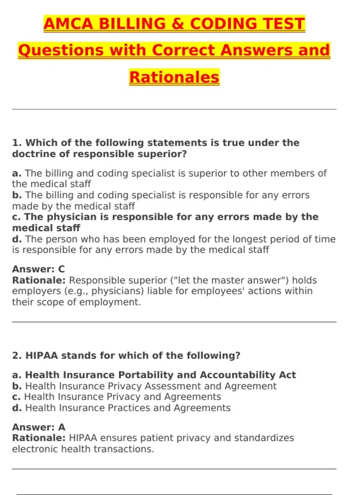 AMCA Billing & Coding Test 2025 | 100% Correct Questions & Verified Answers | Latest 2025 / 2026 Update
