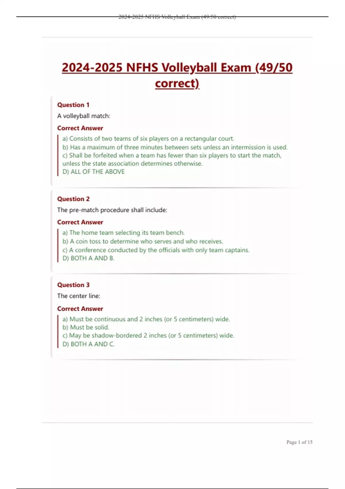 , 2024-2025 NFHS Volleyball Exam (49/50 correct)