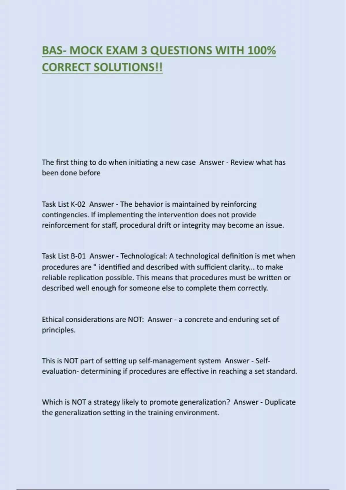 BAS- MOCK EXAM 3 QUESTIONS WITH 100%