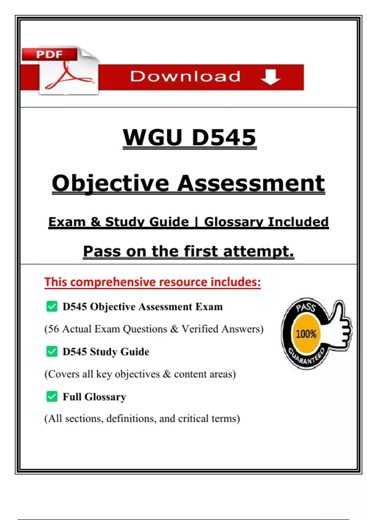 Prepare effectively for the WGU D545 Objective Assessment with our comprehensive 2025 Exam & Study Guide. This guide is designed to help students master the essential topics covered in the D545 course, ensuring success in the Western Governors University objective assessment. Inside, you’ll find a detailed overview of key concepts, practice questions, and a glossary of important terms to reinforce your understanding. Whether you’re aiming for a high score or need a refresher, this study resource is your ultimate tool for exam readiness. Stay ahead with up-to-date content tailored for the 2025 WGU D545 assessment. WGU D545 study guide, WGU D545 exam prep, WGU D545 objective assessment, WGU D545 glossary, WGU D545 practice test, WGU D545 2025, Western Governors University exam, WGU D545 tips, WGU D545 exam guide, WGU D545 test questions, WGU objective assessment study, WGU D545 course review WGU D545, WGU exam prep, WGU study guide, Western Governors University, D545 objective assessment, WGU 2025, WGU test prep, online university exams, WGU exam strategies, WGU course materials