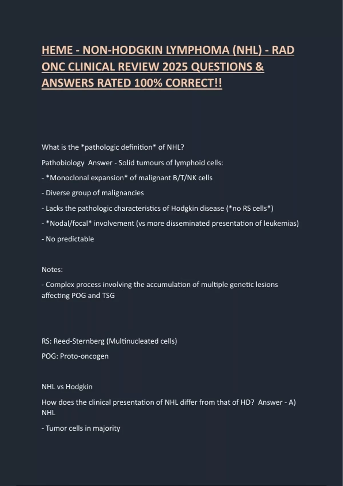 ONC CLINICAL REVIEW 2025 QUESTIONS &