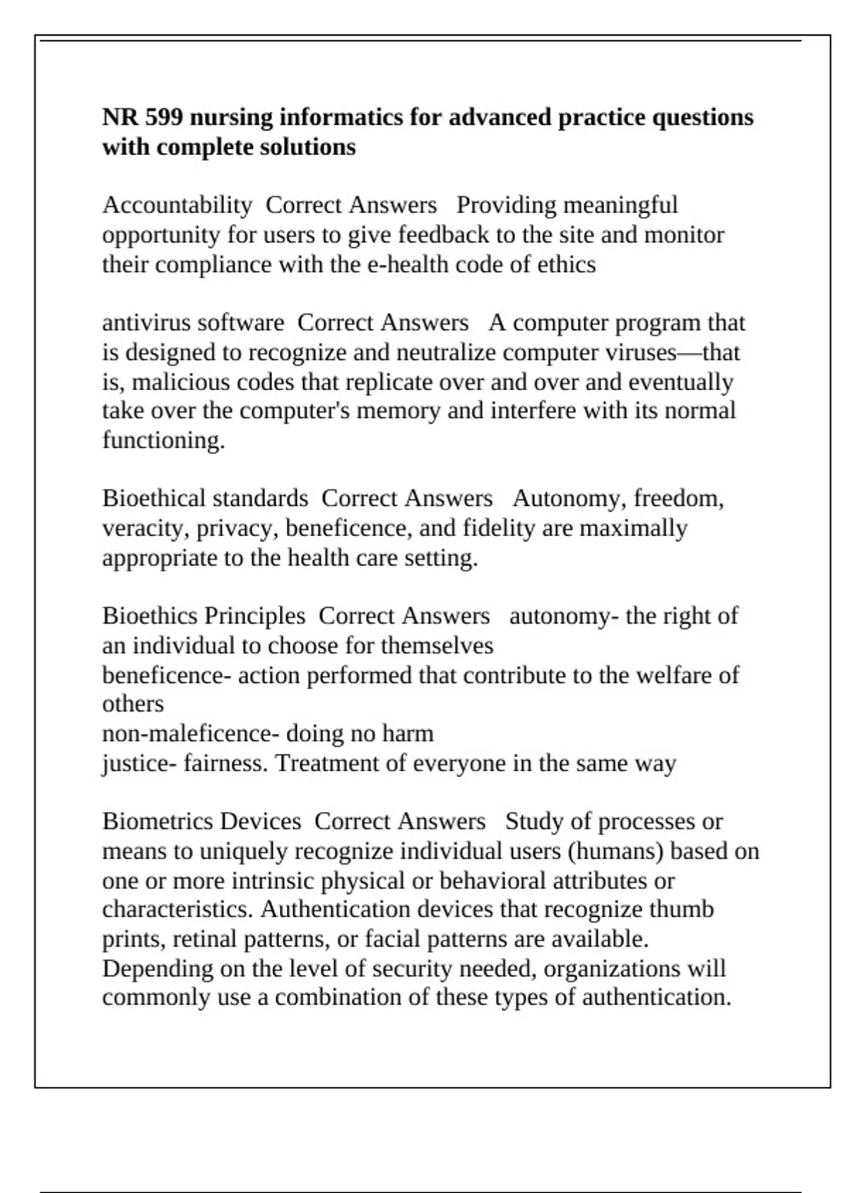 NR 599 nursing informatics for advanced practice questions with complete solutions