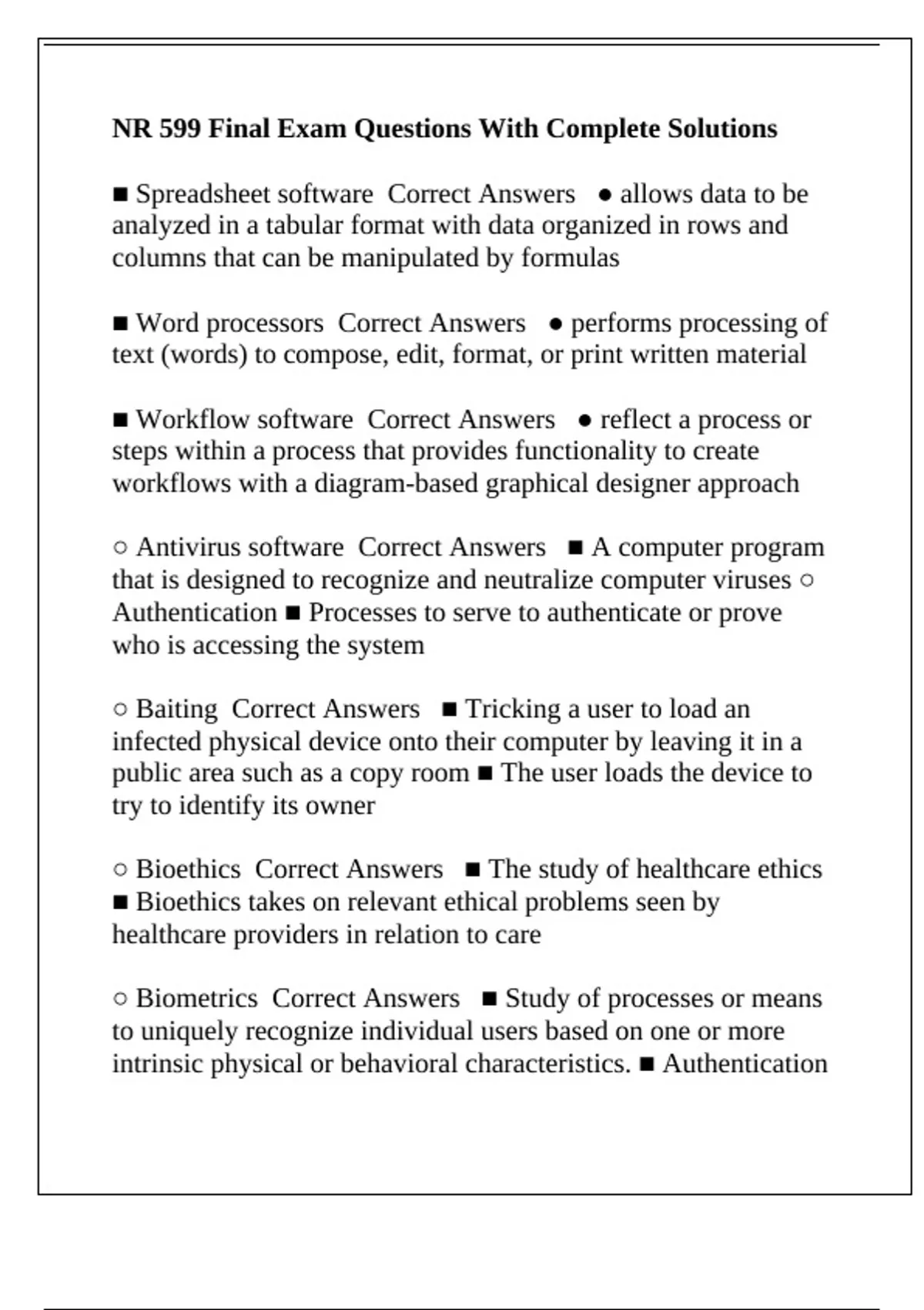 ■ Workflow software Correct Answers ● reflect a process or